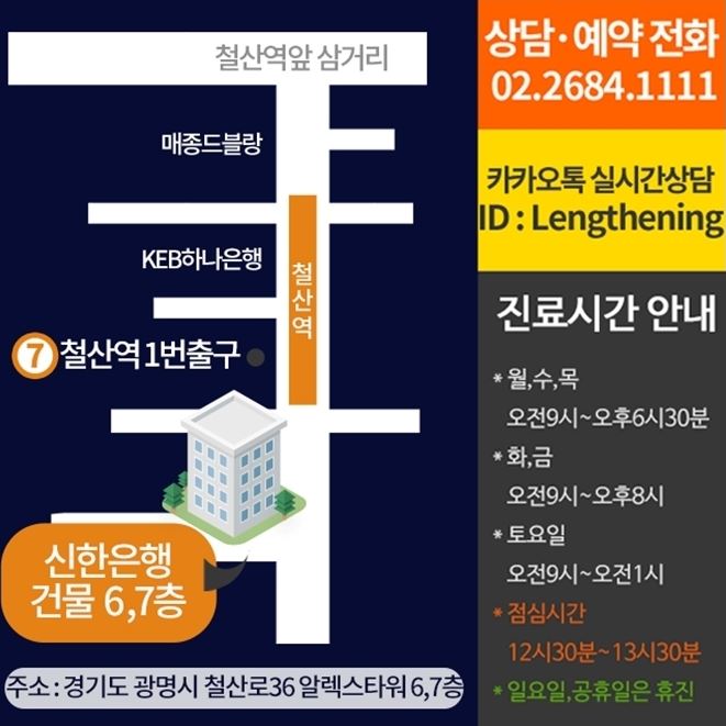 안녕하세요. 7호선 철산역 1번 출구에 위치한 연세김앤정정형외과입니다.